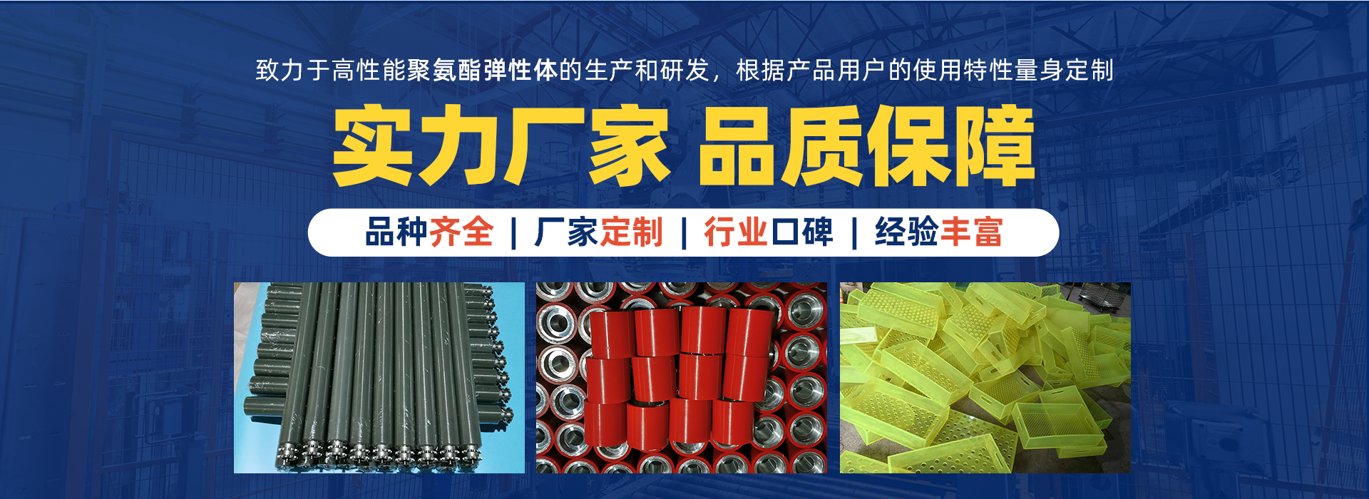蘇州凱騰聚氨酯制品有限公司多年來一直致力于高性能聚氨酯彈性體的生產和研發(fā)。鑒于聚氨酯彈性體的特殊的出色性能,幾乎所有的工業(yè)系統中都會使用到聚氨酯彈性體的產品,我們的產品服務于眾多的行業(yè)如:石油、礦山、冶金、工程機械、汽車制造、多晶硅生產、核工業(yè)項目、紡織印染包裝、農牧、金屬加工、水泥陶瓷、糧食碼頭、物流倉儲自動化、粉體成型與研磨等等;由于不同的行業(yè)和工況條件對聚氨酯彈性體的產品的使用性能要求是不同的,我們可以根據用戶產品特別的使用特性專門為用戶量身定制產品。 了解更多+